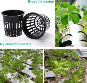 • Our black plastic net cup basket mesh pots are essential for hydroponic, aquaponic, and traditional gardening setups.